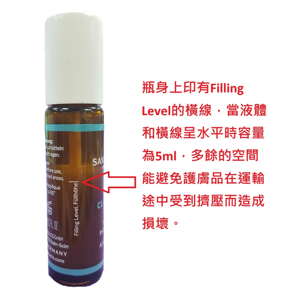 [注意] 本產品的瓶身上印有Filling Level的橫線,當液體和橫線呈水平時容量為5ml,多餘的空間能避免護膚品在運輸途中受到擠壓而造成損壞。
