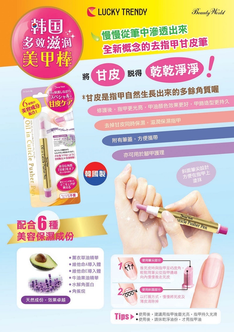 呈45度角,從指甲邊緣外側向內側一點點用力按推死皮。