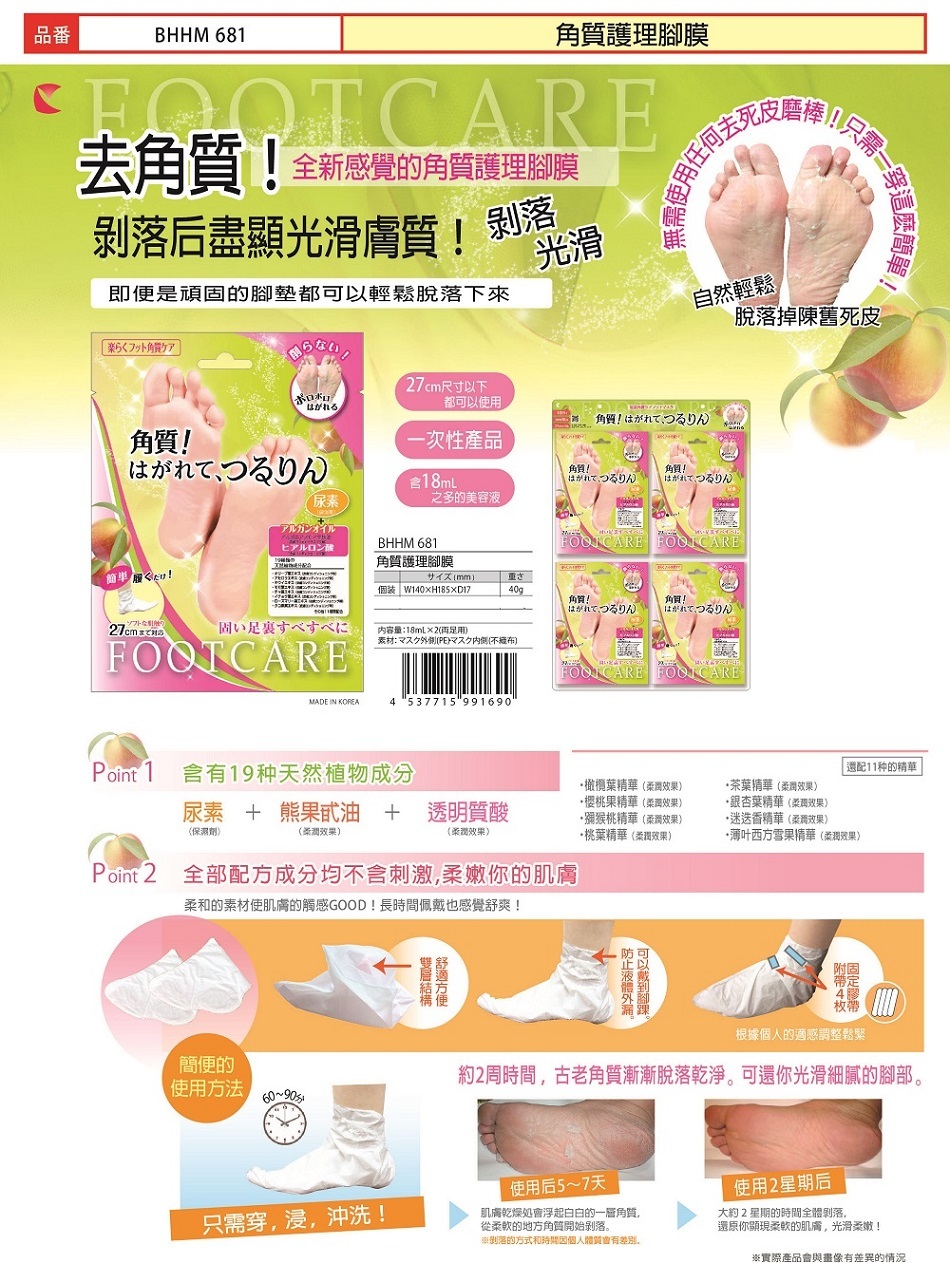 約5~7天後角質開始脫落,2周後呈現光滑足底。