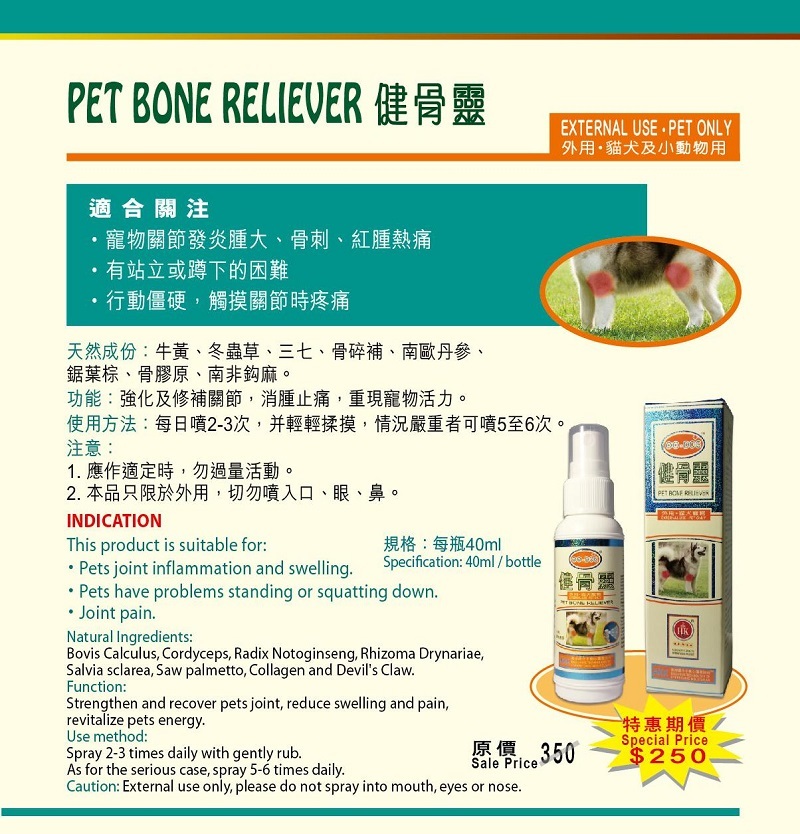 * 寵物關節發炎腫大、骨刺、紅腫熱痛