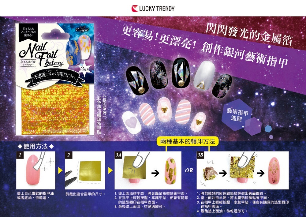 彩色銀箔指甲貼 銀河系 (珍珠白) 美甲