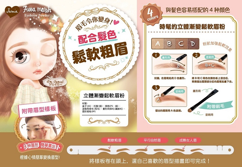 一款易於使用的眉粉專為年輕女孩設計,可以混合所有4種顏色,隨意畫出你想要的顏色。