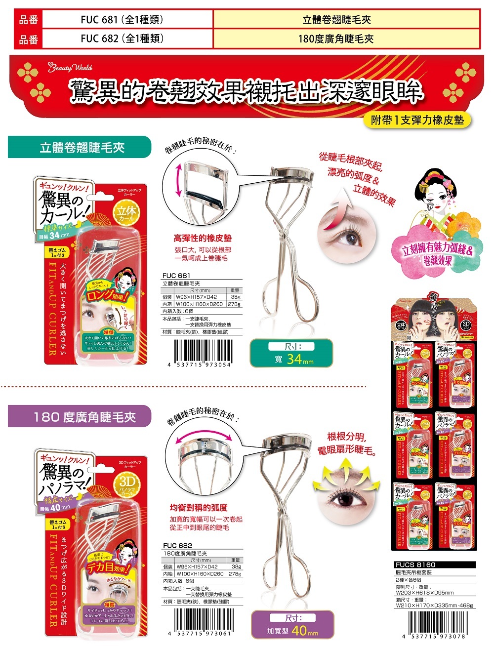 如何使用: 將睫毛夾靠近睫毛根部至睫毛末端輕夾至睫毛捲翹。