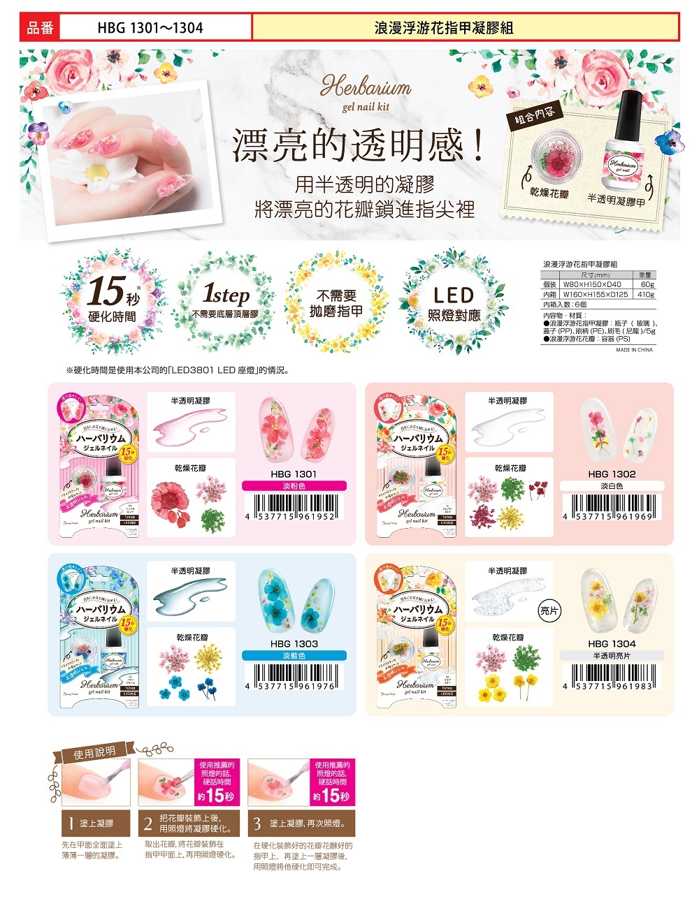 超值套裝,包括美麗的半透明凝膠和乾燥花!