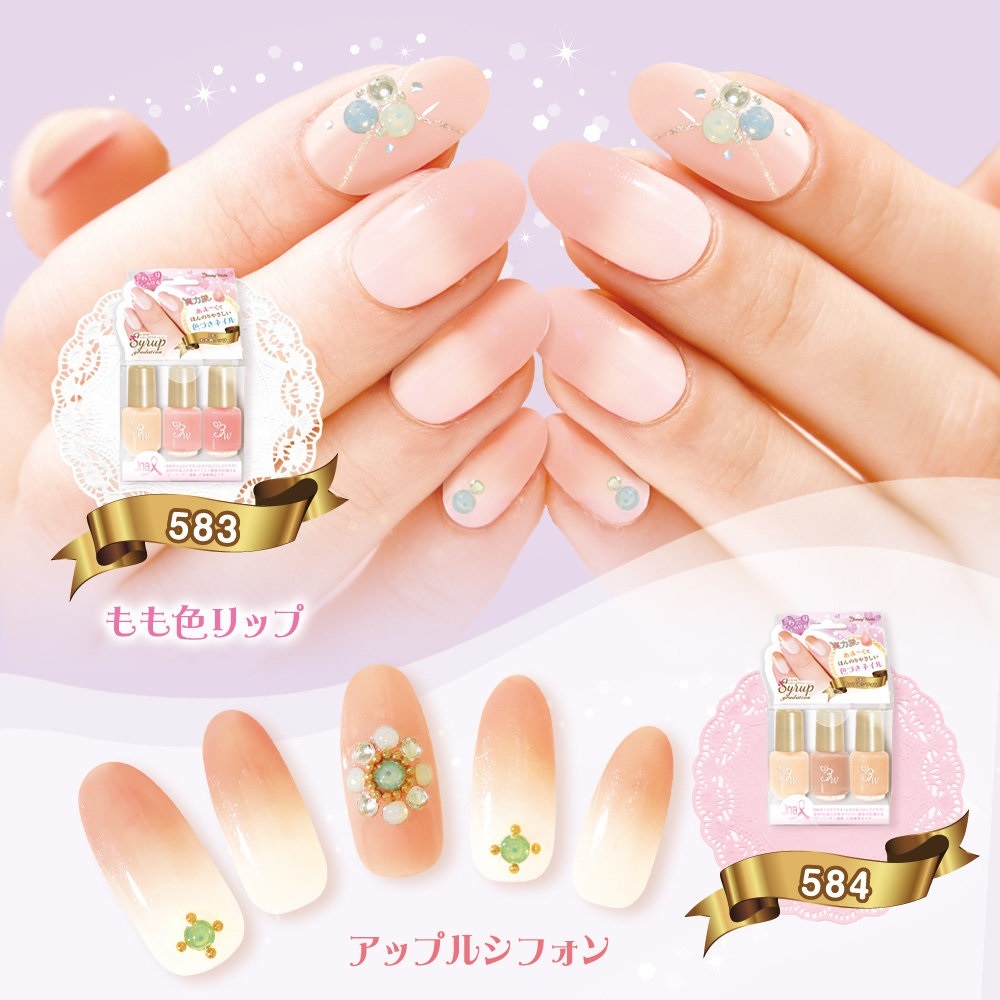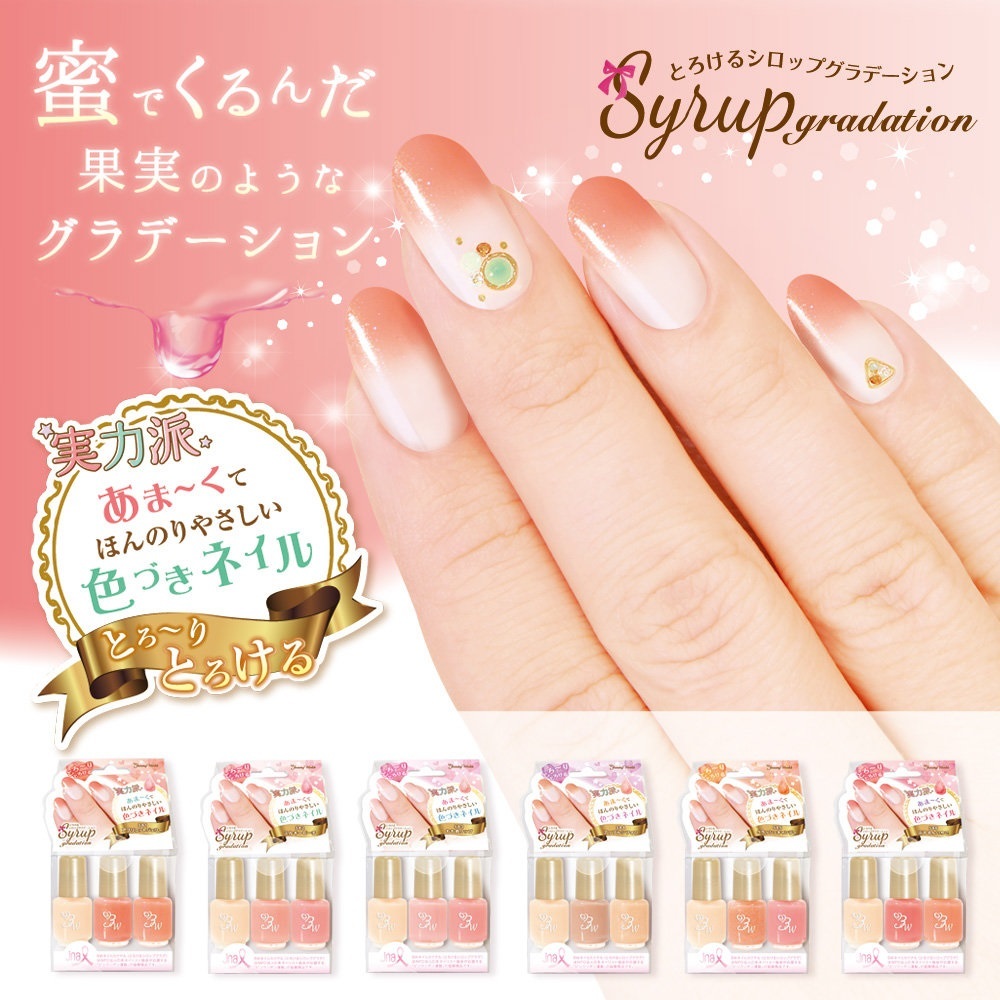 3色指甲顏色套裝,營造出類似蜂蜜包裹的水果般的光澤漸變效果。