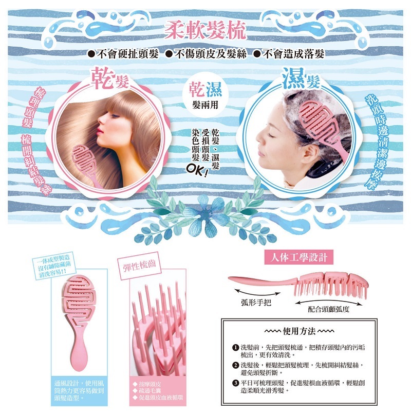 產品名: 乾濕兩用護髮梳 (粉紅色)