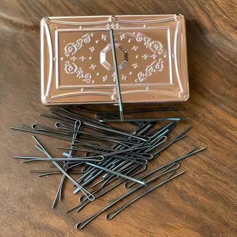 產品名: 髮夾盒連一字直髮夾, (髮夾: 深藍色, 盒: 粉紅色)