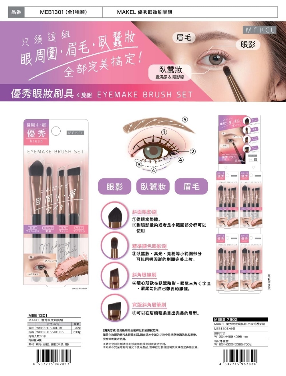 4 件斜角眼影刷、點刷、斜角眼線刷和寬眉刷