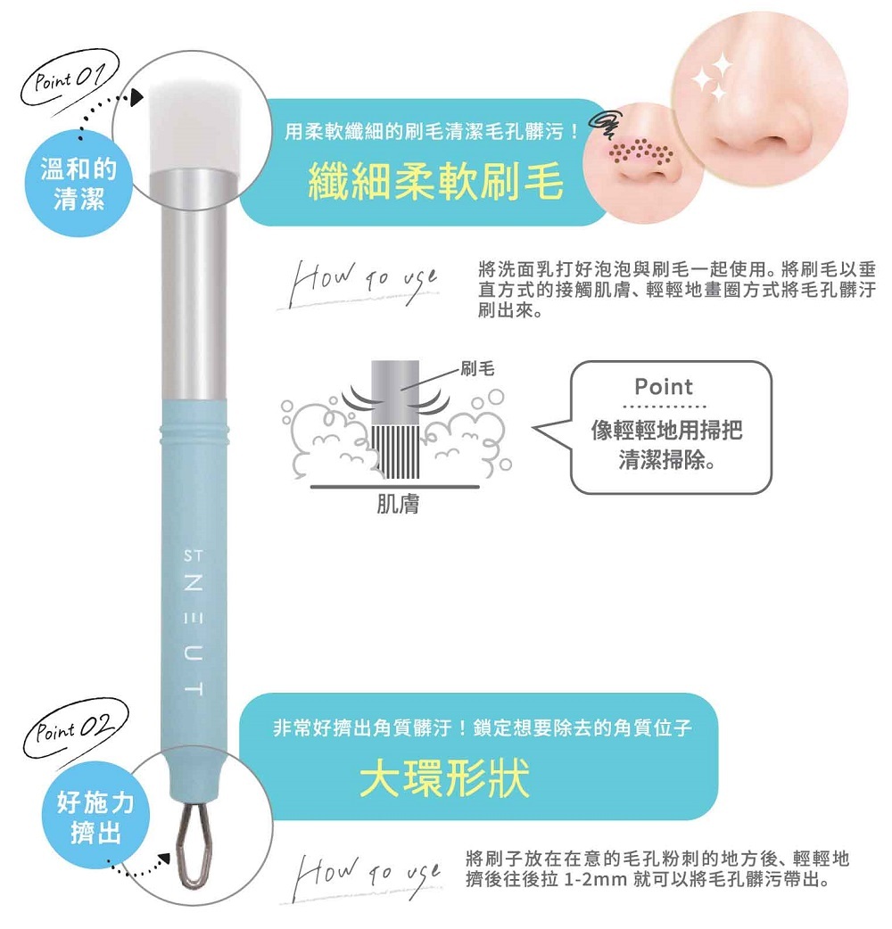 產品名: 2way 毛孔清潔刷 柔軟刷毛 清潔黑頭粉刺