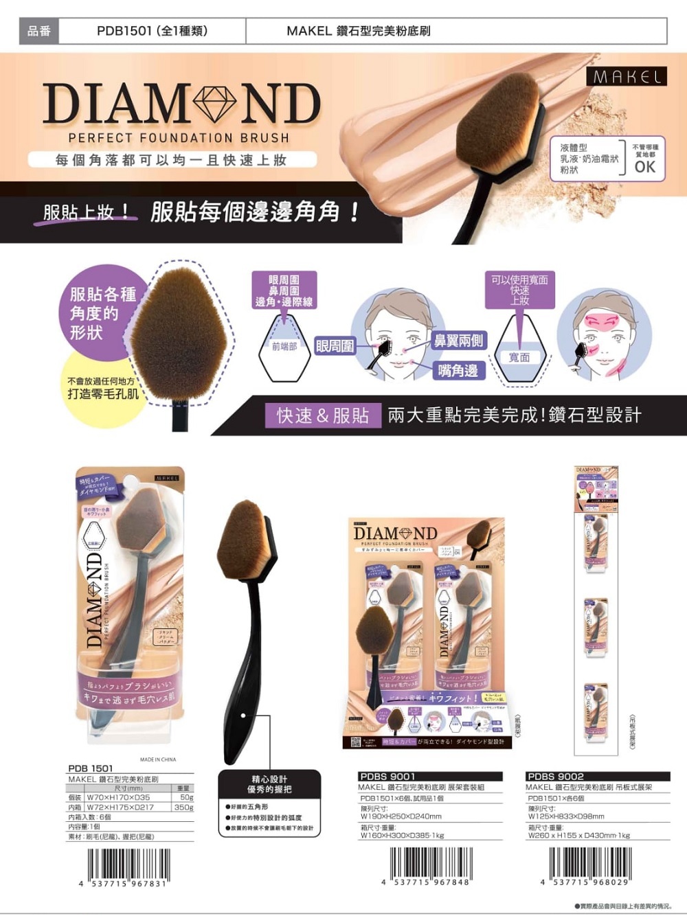 這款鑽石造型粉底刷擁有舒適的手柄和角度,方便塗抹於肌膚。打造無毛孔妝效。它貼合臉部輪廓,讓您一次將妝容塗抹至眼角和鼻翼。刷頭的硬度和體積確保妝效均勻。