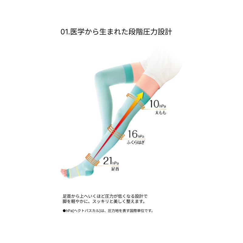 4. 3段壓力設計(腳踝21hPa、小腿16hPa、大腿10hPa。)