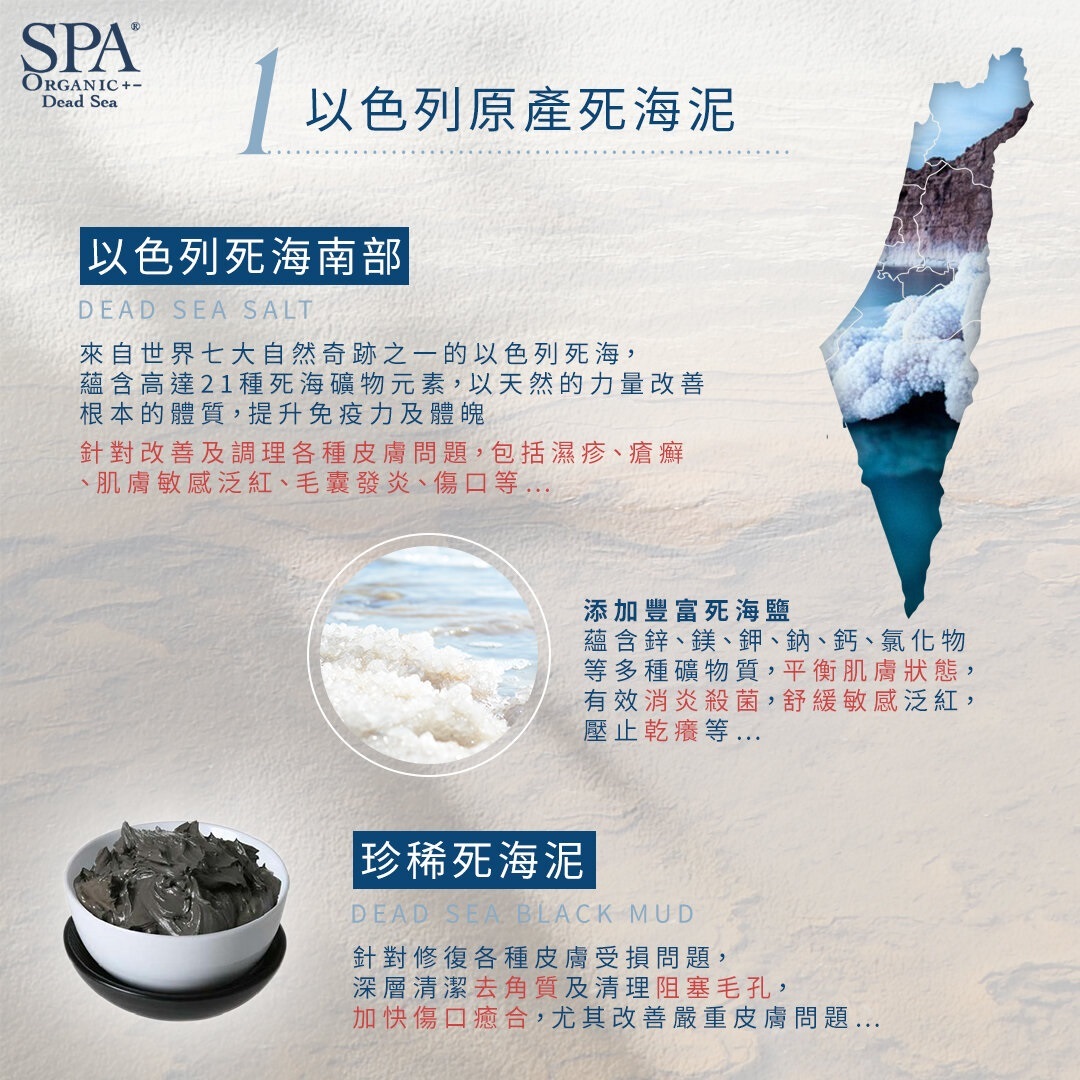 含死海泥成分豐富稀有礦物元素,針對修復各種皮膚受損問題