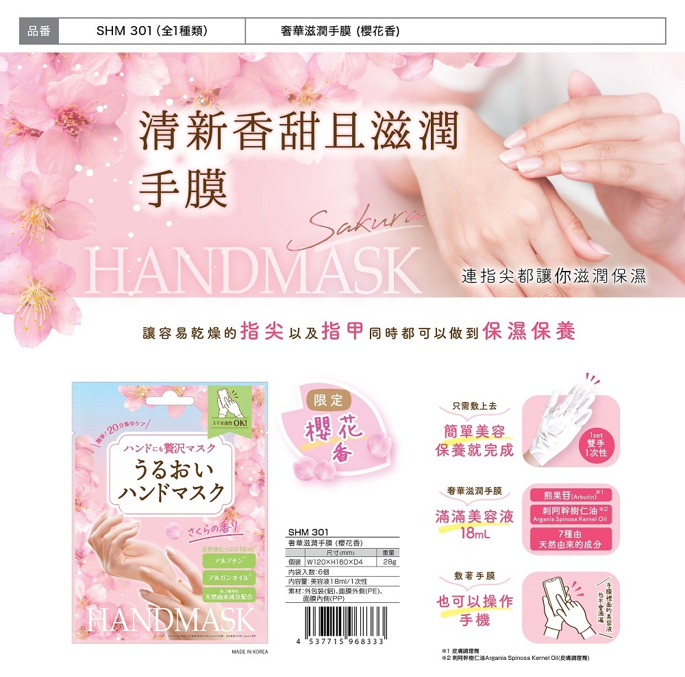 奢華手膜 櫻花香味 一次性使用 手部護理 手套 保濕 睡眠 乾燥肌膚 手部 保濕手套 夜用 粗糙雙手 高保濕護手霜 韓式套裝