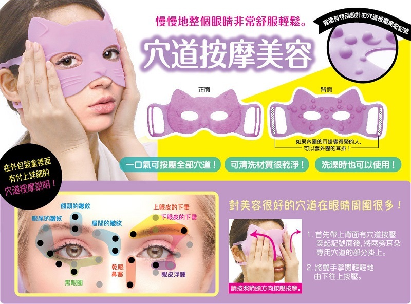 眼周遍布穴位,對美容大有好處!這款 可愛的貓咪眼罩有特殊的