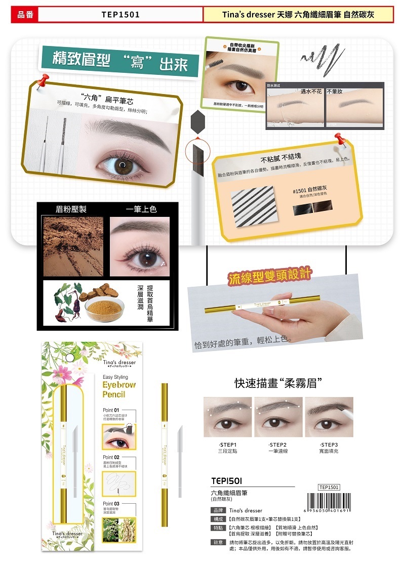 纖細眼眉粉筆+筆芯替換裝 自然碳灰 六角型