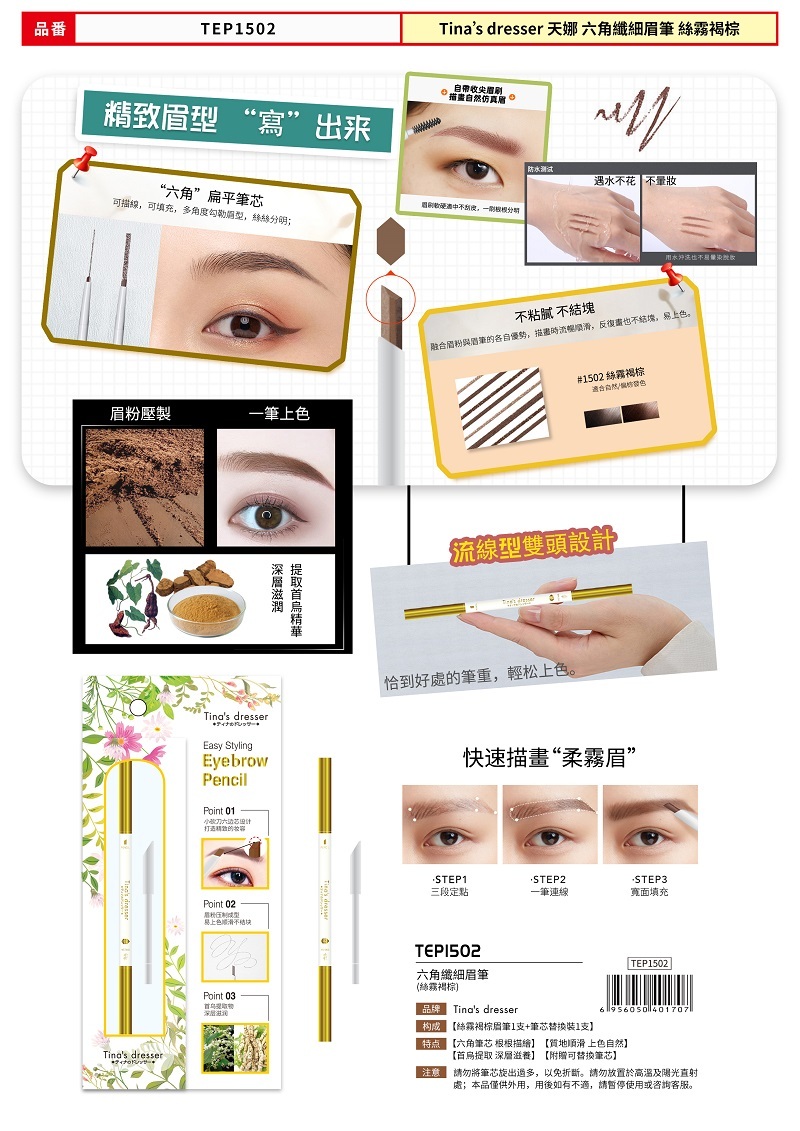 纖細眼眉粉筆+筆芯替換裝 (絲霧褐棕) 六角型