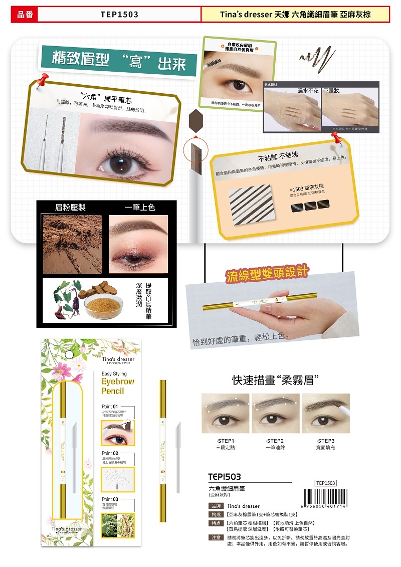 纖細眼眉粉筆+筆芯替換裝 (亞麻灰棕) 六角型