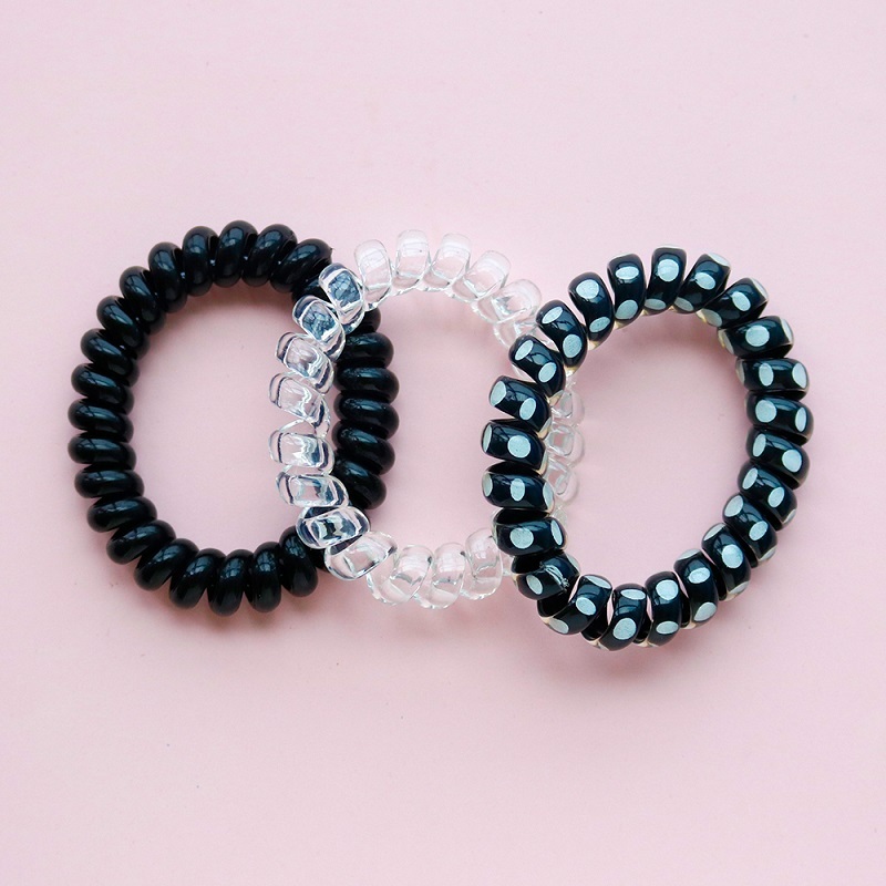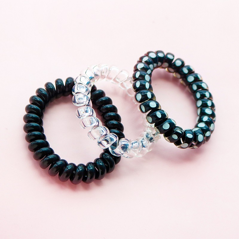 電話繩髮圈 (黑色, 白色, 圓點花紋)