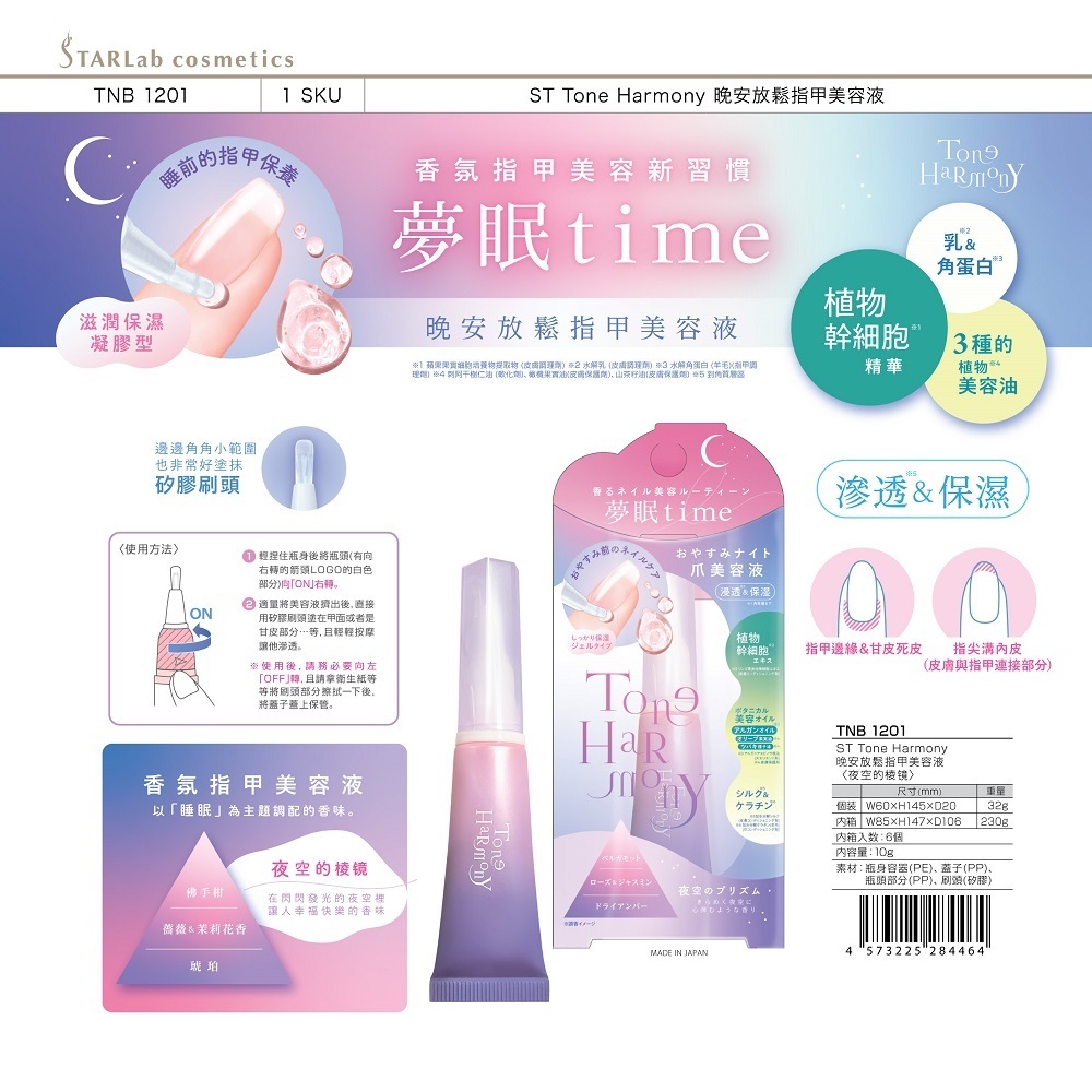睡眠香氣的原始混合物,含有植物幹細胞萃取物*1、蠶絲*2、角蛋白*3、以及對指甲有益的三種美容油*4。