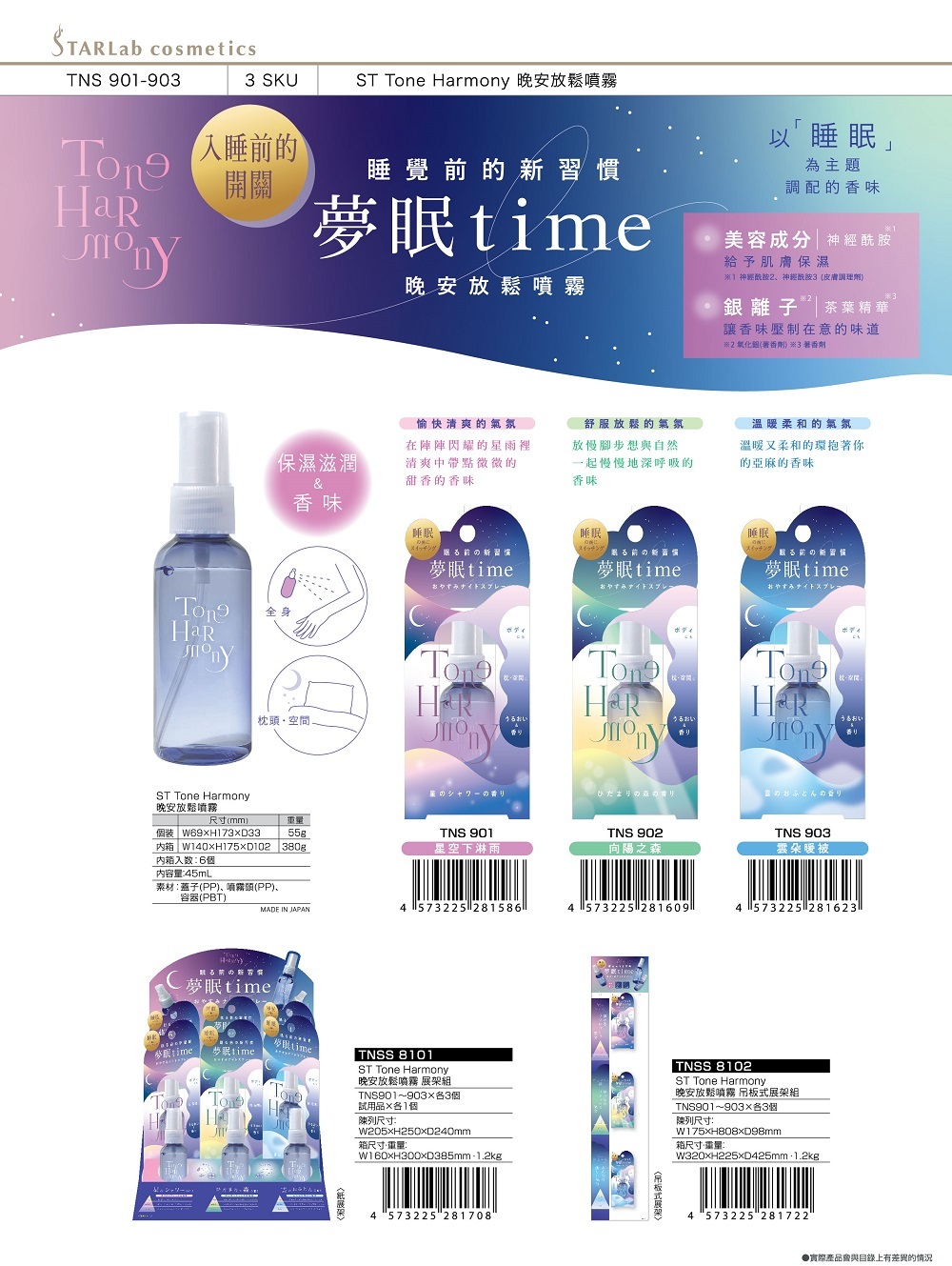 日本 StarLab 睡眠放鬆噴霧 枕頭香水 45ml (雲朵暖被) Tone Harmony TNS903