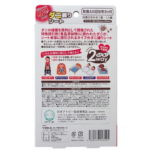 不含殺蟲成分或有害成份,可在嬰兒、寵物環境下的各種場所使用,可粘貼或放置兩種方式使用。